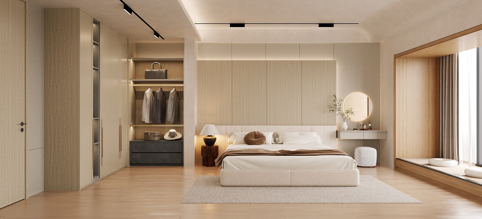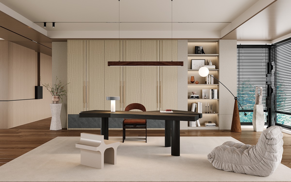 于原木、自然中汲取灵感, 构筑和谐统一的空间格调。 于无形中营造静谧氛围, 铺叙对质感生活的向往。